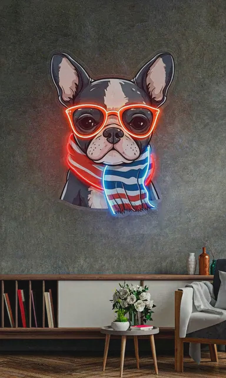 Tarz sahibi ve karizmatik köpeklere olan sevginizi ifade etmenin en şık yolu olan Gözlüklü Köpek Neon Lamba, odanızda farklı ve dikkat çekici bir görüntü sağlar. Modern ve eğlenceli dekoratif ürünler arayanlara hitap ediyor.