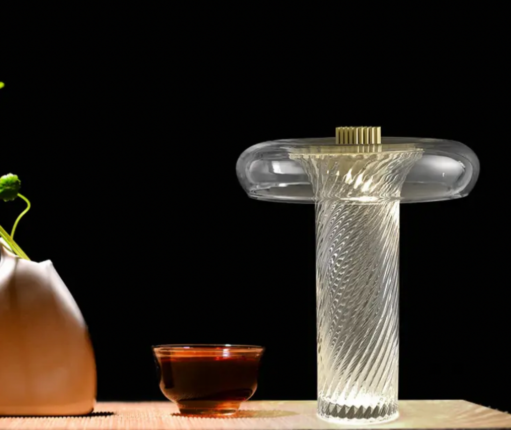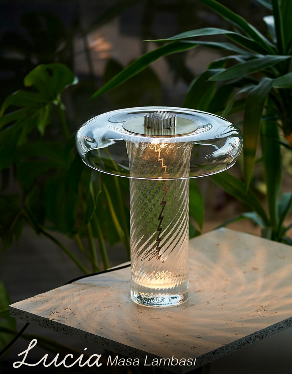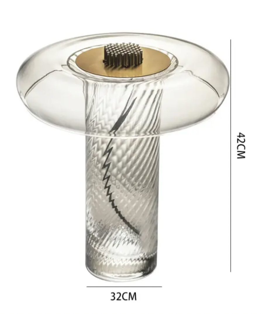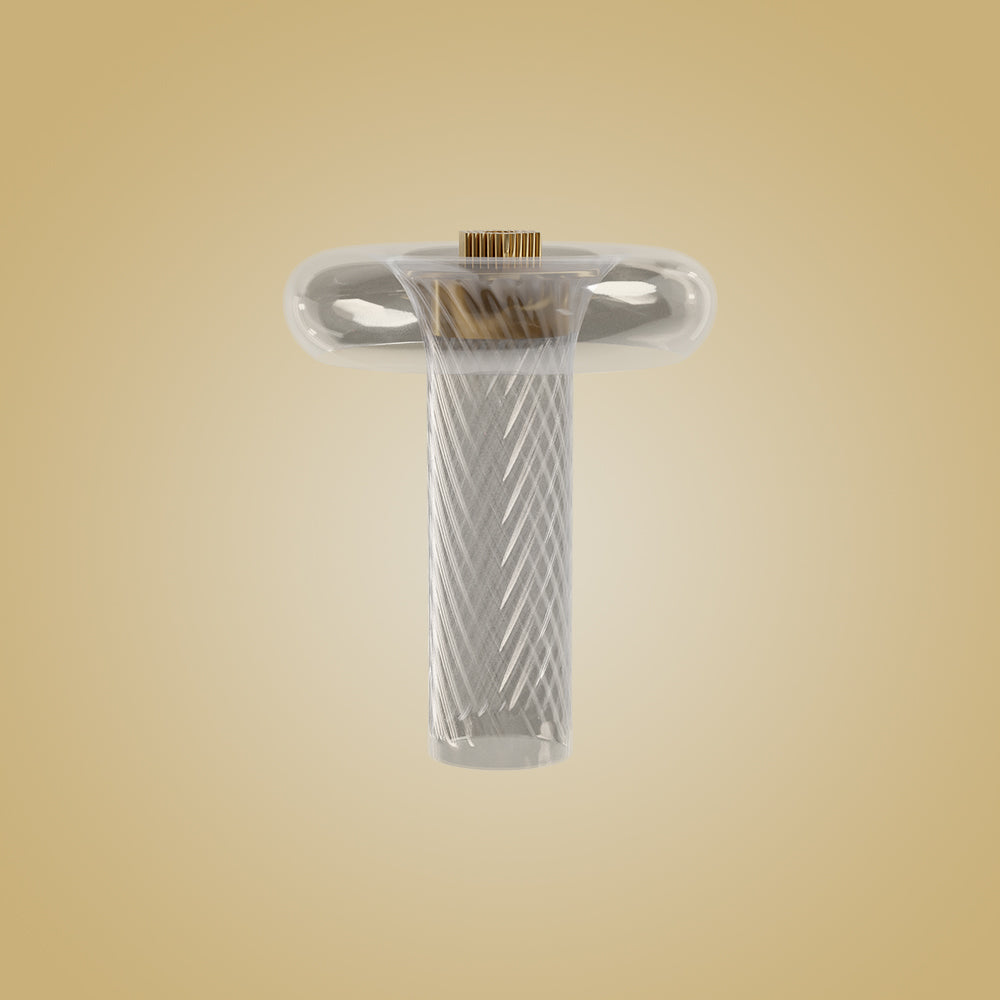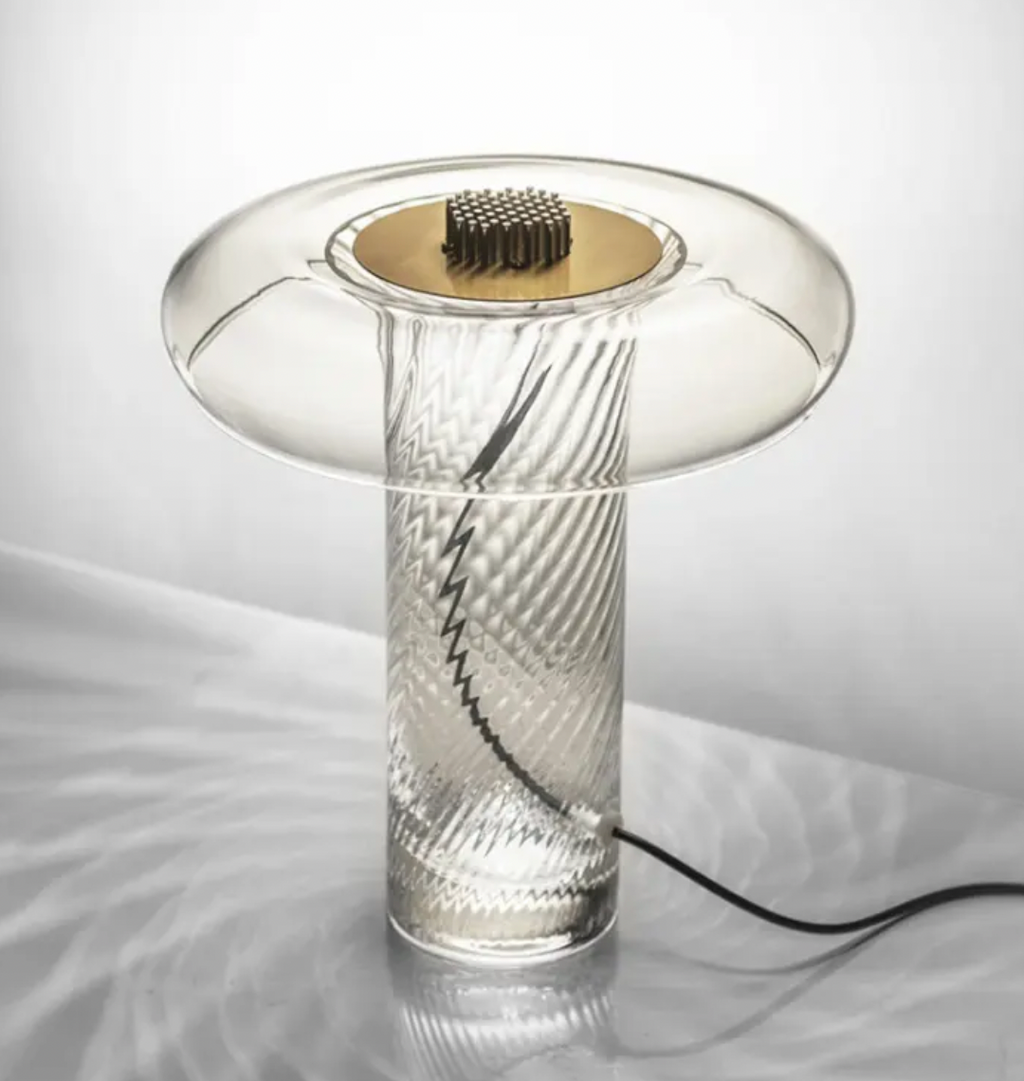 Atolye Store tarafından satışa sunulan Lucia Cam Masa Lambası, özel yapım cam gövdesi ve modern cam birleşimi ile aydınlatmanın yanı sıra özel bir dekor özelliği sunuyor.