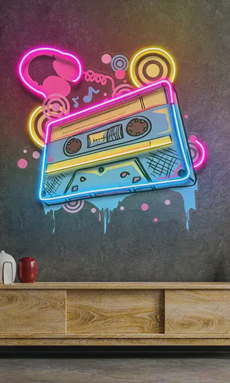 Renkli Kaset Neon Lamba, nostaljik bir havayı modern bir dokunuşla getiriyor. Bu lamba, müzik tutkunları için harika bir aksesuar olup, herhangi bir mekana eğlenceli bir atmosfer katmak için idealdir.
