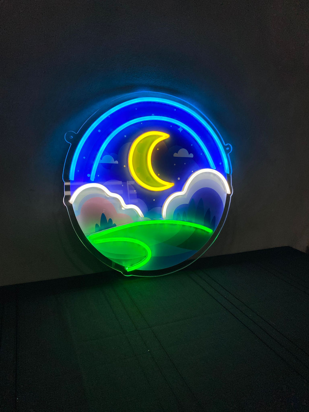 Yıldızlı Gece Neon Lamba, gökyüzünün büyüleyici manzarasını odanıza getiriyor. Hem romantik hem de sakinleştirici bir atmosfer arayanlar için ideal bir seçim.