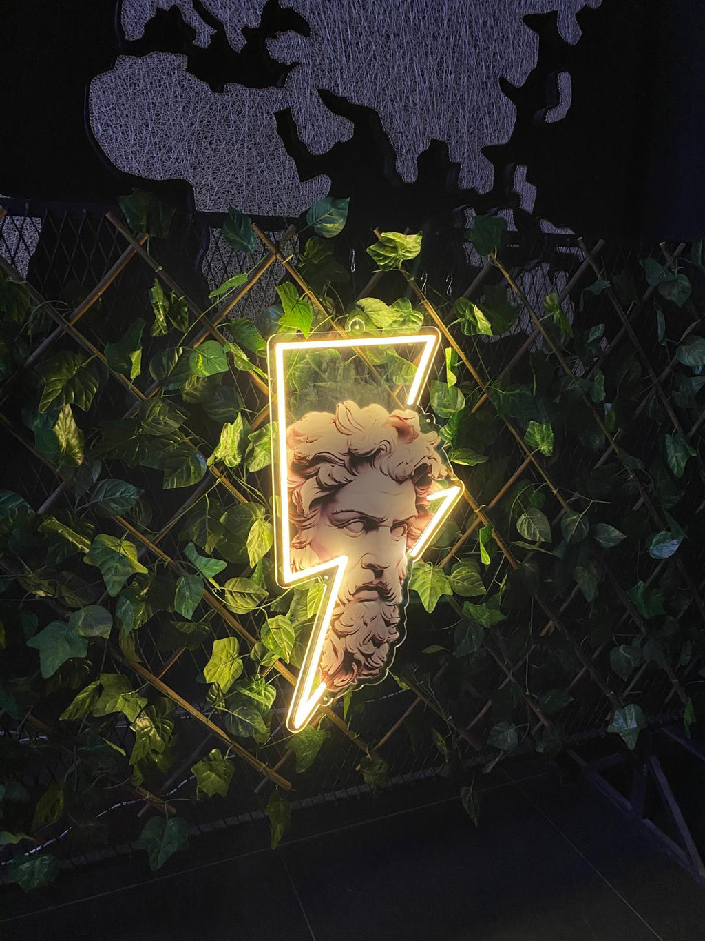 Zeus Ve Yıldırım Neon Lamba, Yunan mitolojisinin en güçlü tanrısı Zeus'un yıldırımlarından ilham alınarak tasarlanmıştır. Evinize veya ofisinize mitolojik bir hava katmak için ideal bir aydınlatma parçası.
