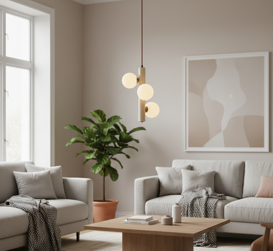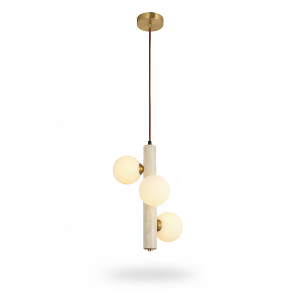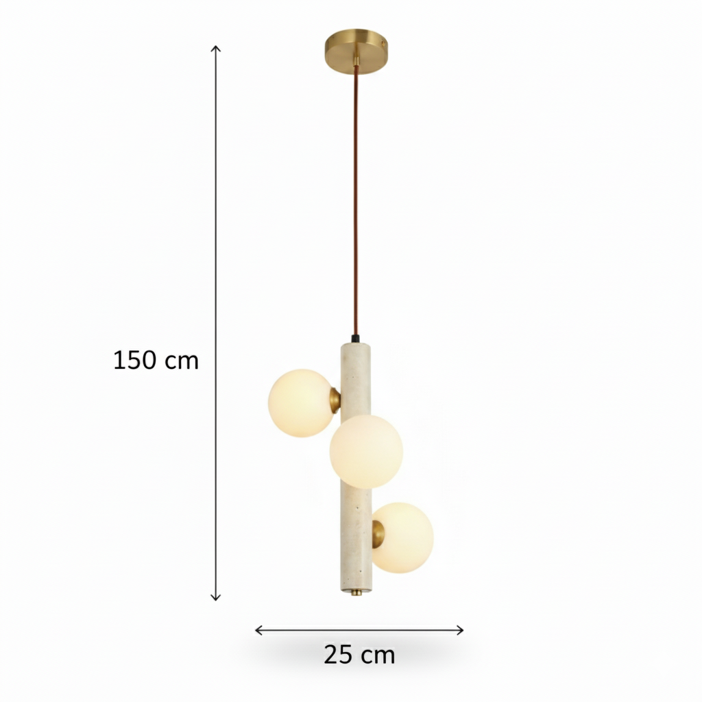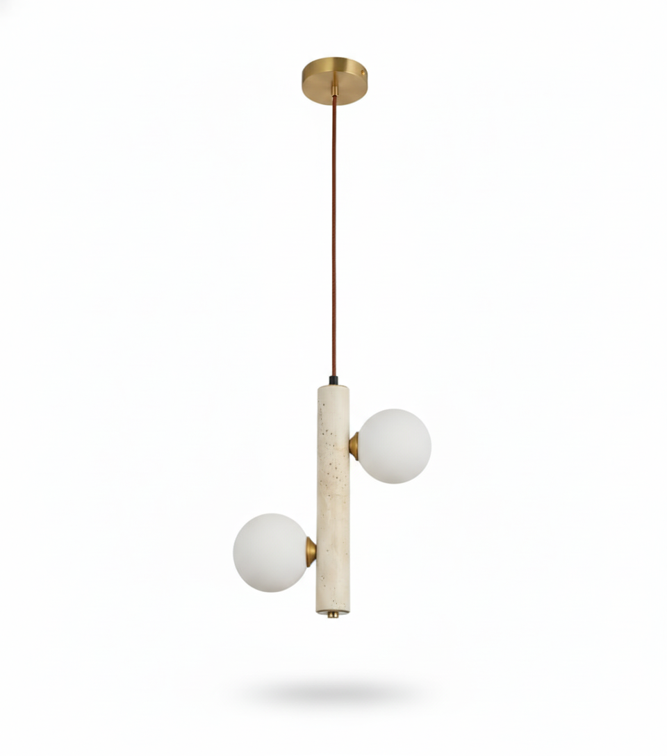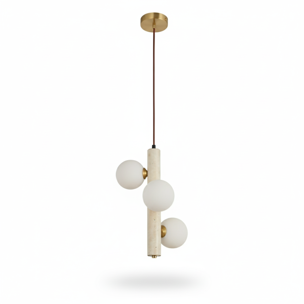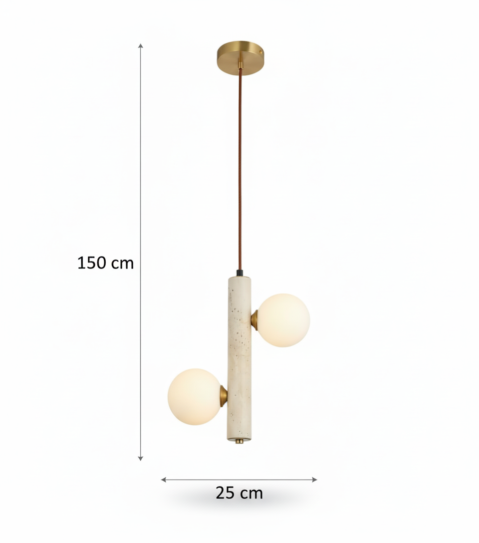 Doğanın en saf hali olan traverten taşının modern tasarım ile buluştuğu Caldera Traverten Sarkıt, yaşam alanlarınıza organik bir zarafet katıyor. Her bir parçası benzersiz doğal taş desenlerine sahip olan bu sarkıt lamba serisi, üzerindeki opal cam küreler sayesinde ışığı yumuşatarak mekanda huzurlu bir atmosfer yaratır.