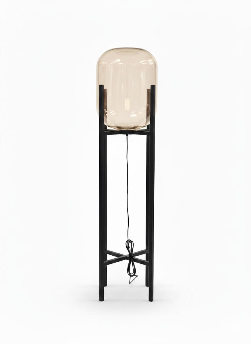 Modern tasarımın geometrik hatlarla buluştuğu Carl Lambader, sadece bir aydınlatma aracı değil, yaşam alanınızın ruhunu değiştiren iddialı bir dekoratif objedir. Geniş bal rengi camı ve ince siyah metal ayaklarıyla, hem minimal hem de endüstriyel dekorasyon stillerine kusursuz bir uyum sağlar.