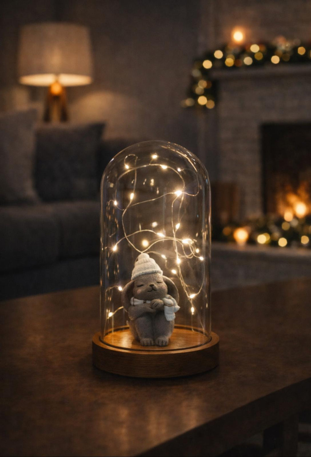 Işıklı Fanus Mavi Şapkalı Tavşan Figürlü Led Masa Lambası, Ürün Özellikleri;