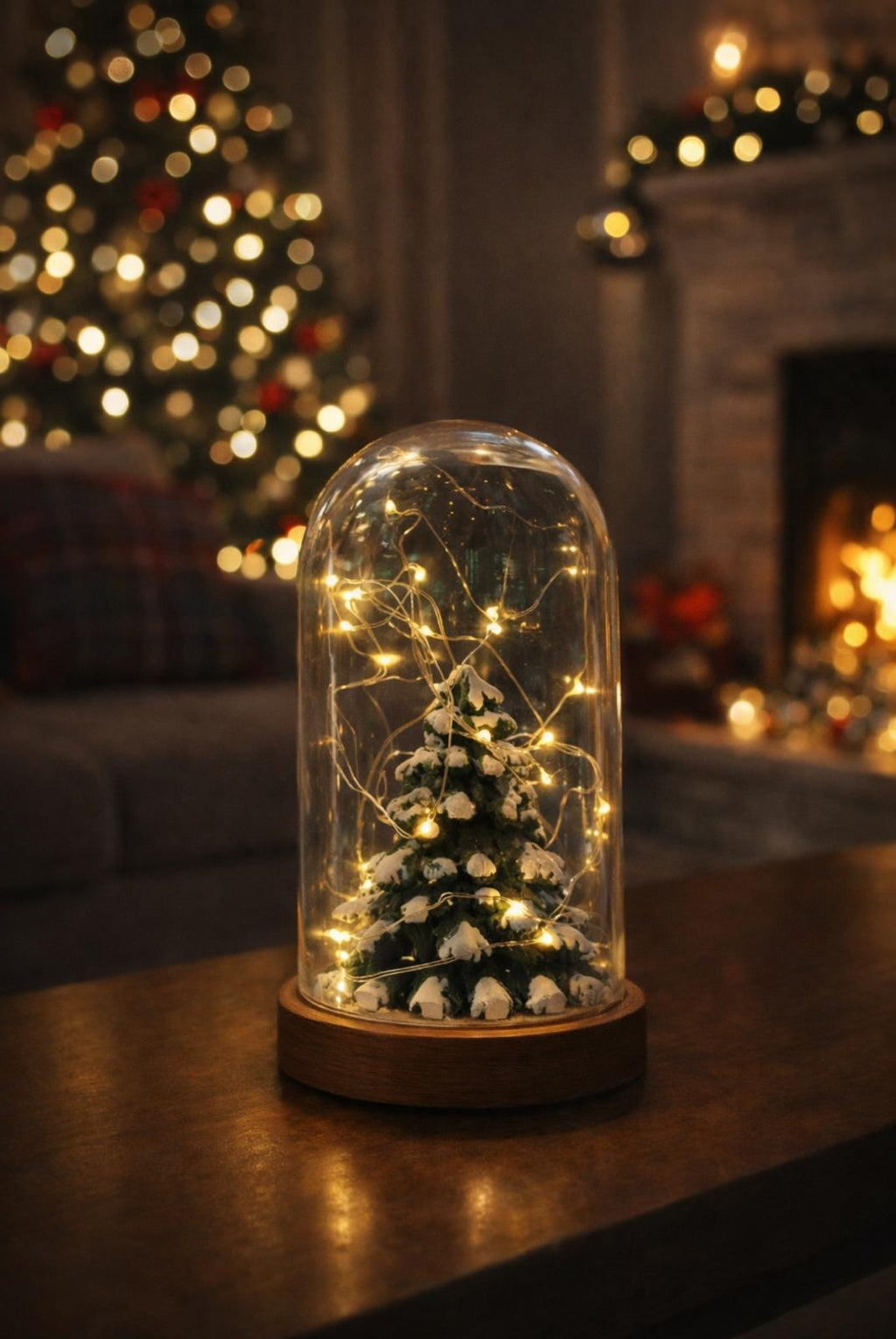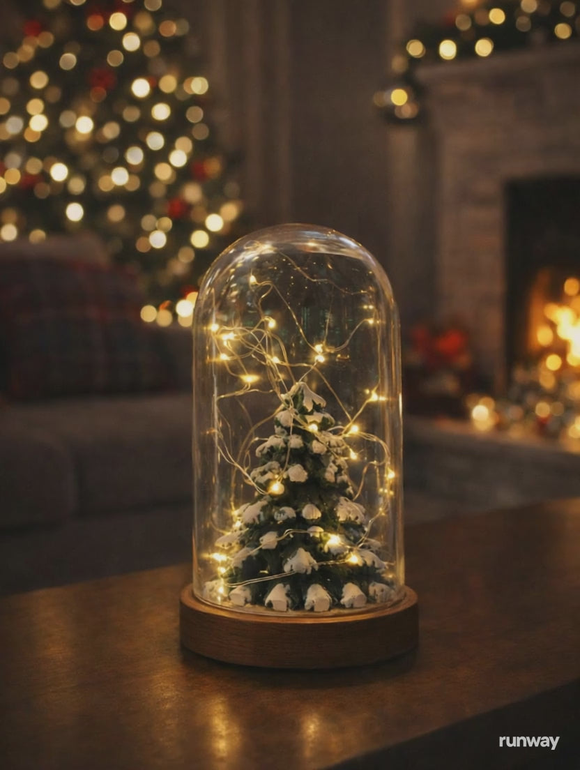 Işıklı Fanus Yılbaşı Ağacı Figürlü Led Masa Lambası, Özgün ve Doğal Tasarım
