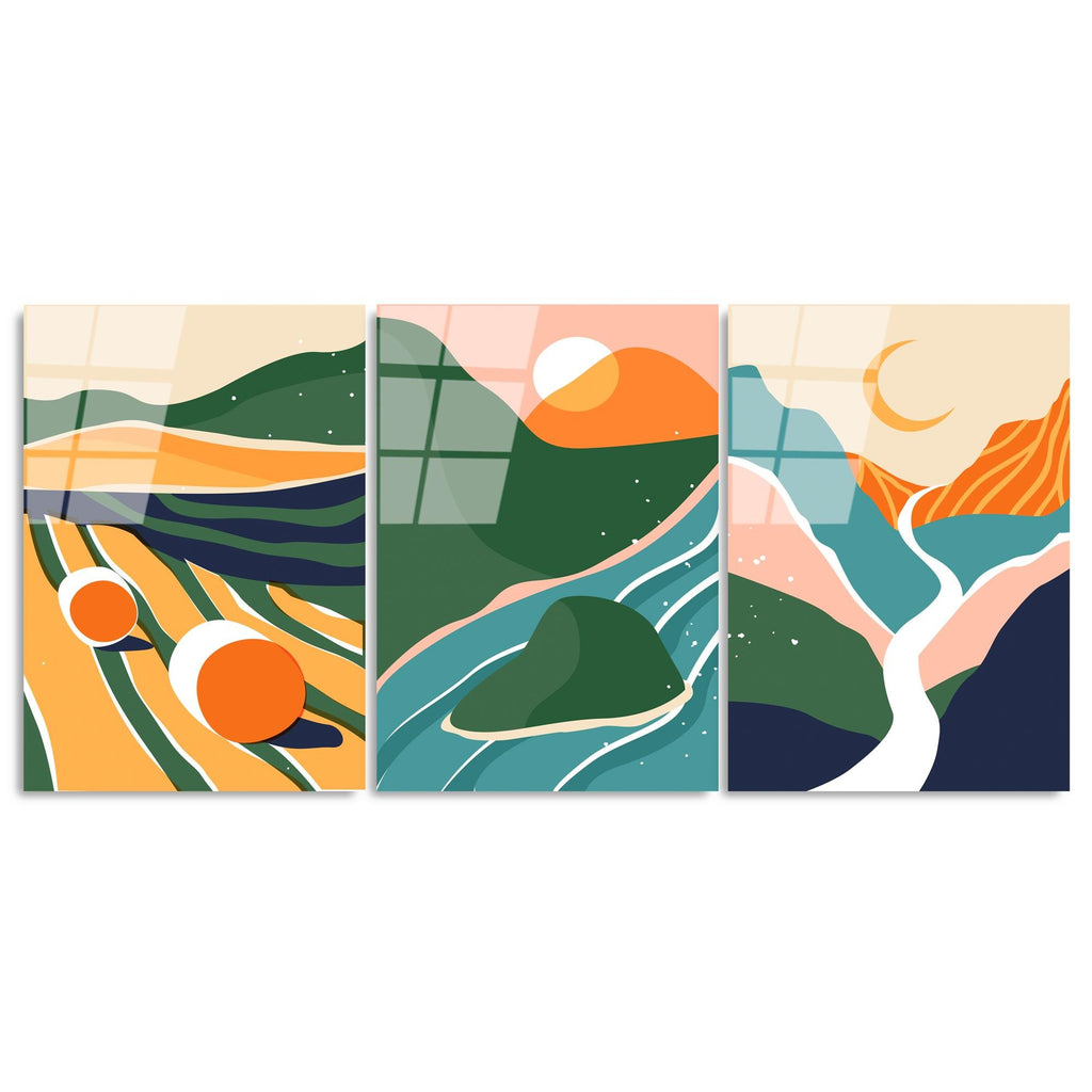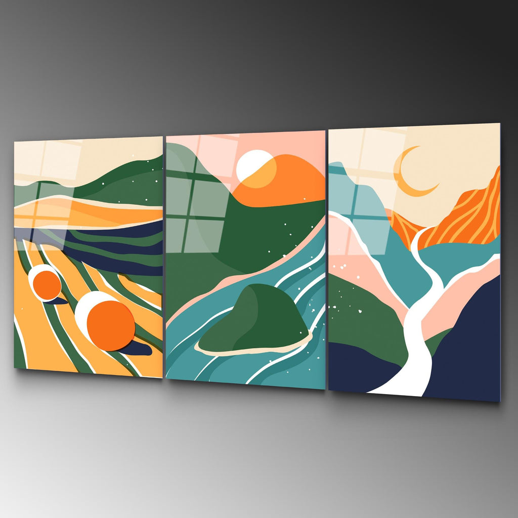 UV-946 Baskılı Cam 3'lü Set Duvar Tablosu | ByLamp
